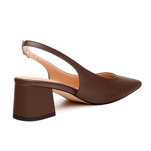 Womens Slingback Pumps, Pointed Toe Mid Chunky Heel Pump Shoes for Women, Leather Insole Comfort Daily Pumps 2" 5