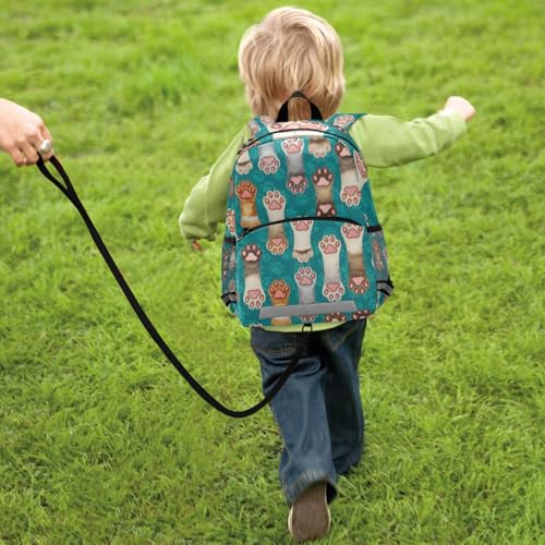 Colored Cat Paws Toddler Girl Backpack with Leash, Small Kids School Backpacks Travel Backpack 7