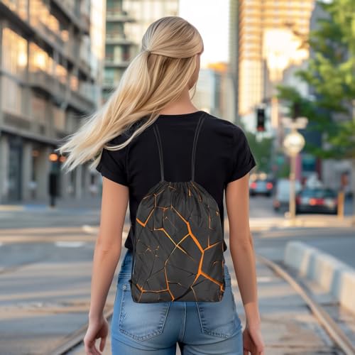 Erosebridal Orange Honeycomb Print Drawstring Bags 13X15.7,Orange and Black Volcano String Backpack,Volcano Rock Drawstring Backpack,Neon Light Geometrical Honeycomb Draw String Back Bag 6