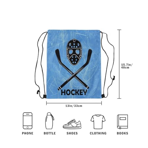 Erosebridal Hockey Drawstring Backpack 13x15.7 for Sport Gym Swim Yoga Camping,Sports Gaming Theme Drawstring Bags,Ice Hockey Stick Draw String Back Bag,Winter Athletic Sport String Backpack 5
