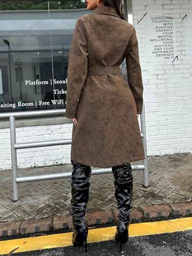 Long Suede Trench Coat Women Faux Leather Jacket Loose Button Lined Jacket Open Front Motorcycle Coat with Belt