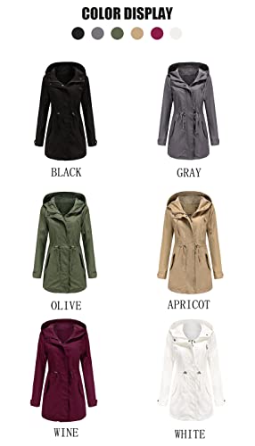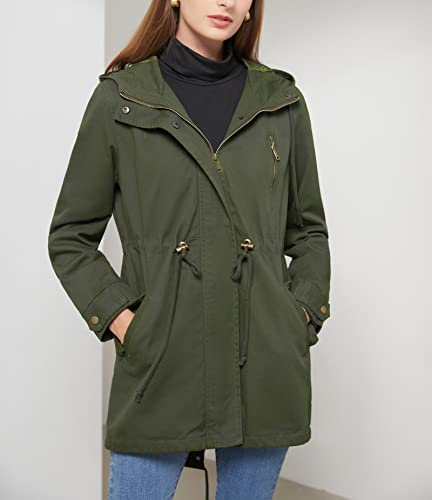• 【Product Details】Women's Lightweight Trench Jacket/Windbreaker Hooded Coat/ Cotton Coat / Basic Jacket for Women/ Trendy and Fashion / Front Zipper / Hooded/ Solid Color/ Long Sleeve/ Adjustable Drawstring Waist/ Lightweight/ Metal Full Zipper / Button Closure/ High Waist / Windproof /Ribbed Cuffs /Two Slant Pocket