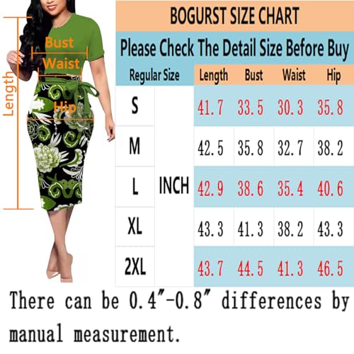 popular ! BOGURST Women Midi Bodycon Dress Work Casual Cute Floral Prints Pencil Dresses