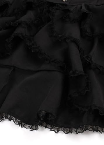 • Layered Ruffle Skirt: Eye-catching tiered skirt with voluminous ruffles and lace trim adds a romantic, vintage touch