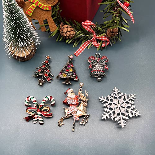 XGALBLA Christmas Brooch Pins, Rhinestone Crystal Enamel Christmas Jewelry Gift for Women Girls 6
