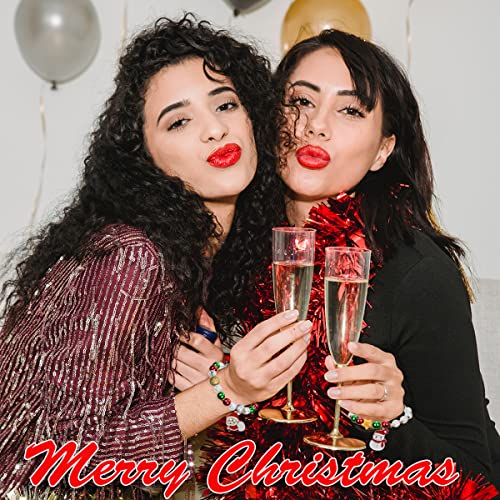 Spiritlele 12 Pieces Christmas Bracelets Santa Claus Deer Tree Bell Charm Bracelets Costume Beaded Strand Stretch Bracelet Wristband Set