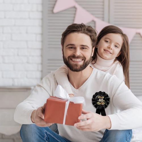 Why Choose WOWOPA Happy 40th Birthday Pin, Cheers to 40 Years Old Birthday Black Corsage Rosette Button Tinplate Badge Pin Party Decorations - 1Pcs?