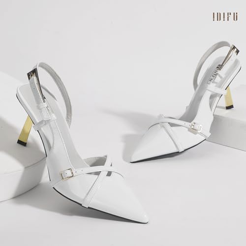 IDIFU IN3 Slingback Heels for Women Closed Toe Kitten Heels Women's Pumps Low Heel Dress Shoes for Women Comfortable Wedding Prom Bridal Bridesmaid Work Dressy Pumps Strappy Pointed Toe Shoes 1