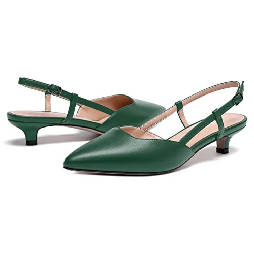 WAYDERNS Women's Matte Slingback Pointed Toe Buckle Kitten Low Heel Pumps Cute Dress Shoes 1.5 Inch