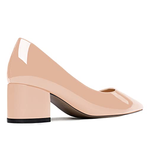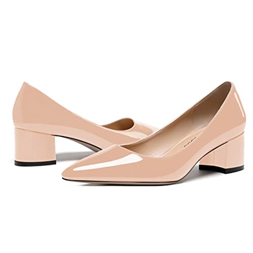 MODENCOCO Women's Pointed Toe Patent Solid Slip On Thick Chunky Low Heel Pumps Shoes 2 Inch