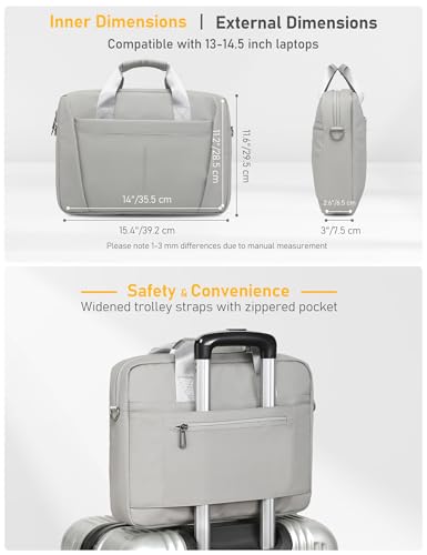 Superior Protection: It uses high-strength Oxford cloth with waterproof coating, which is super water-resistant, wear-resistant and oil-resistant. The interlayer uses high-elastic shock-absorbing material to protect your laptop and items in all directionsStylish Appearance: The combination of color blocking and grainy fabrics, the thick texture and exquisite patterns make this handbag more elegant and uniquePractical Function: This bag has a front pocket and four insert pockets, which are convenient for you to plan items efficiently. There are two compartments and two mesh pockets in the main pocket. There is also a zipper pocket on the widened trolley strapPortable: Each briefcase is equipped with a detachable and adjustable shoulder strap, and the shoulder pad is lined with pearl cotton. The thickened handle makes the grip more comfortable. The back of the bag is equipped with a widened trolley strapCompatibility: The computer compartment measures 14*11*2.4 inches and is compatible with MacBook Pro 14 M4/M3/M2/M1 Pro/Max 2024-2021 (Model: A3401, A3185, A3112, A2992, A2779, A2442), MacBook Air 13 M4/M3/M2 2025 (A3240, A3113, A2681), ASUS Chromebook Flip CX1, Dell Latitude 7490, HP 14 Laptop Perfect for everyday use. first-class materials and excellent craftsmanship ensure long-lasting durability.