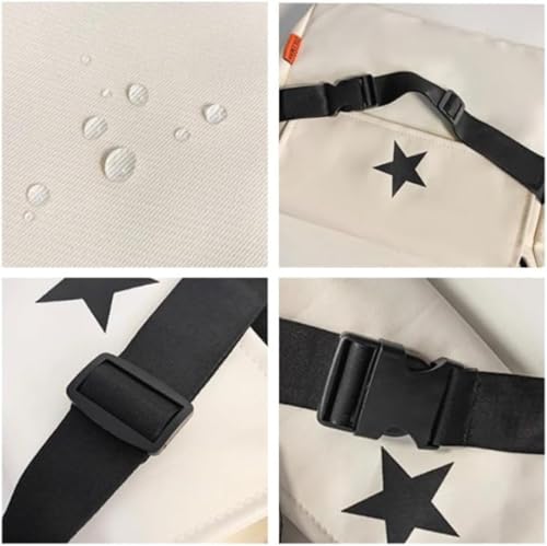 Star Pattern Messenger Bag Y2K Aesthetic Crossbody Bag Zipper Closure Tote Bag Multipurpose Shoulder Bag (White) 4