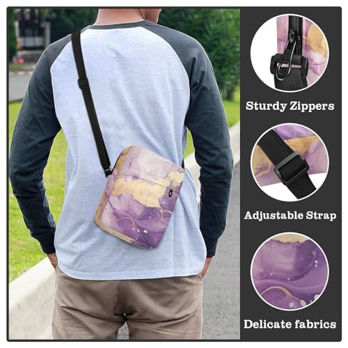 Crossbody Bag Purple White Gold Marble Messenger Bag for Women Men Purse Shoulder Bag Satchel Bag with Adjustable Strap 214B0111 5