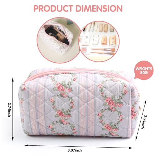 More information about Floral Makeup Bag, Cute Quilted Makeup Toiletry Bag, Zipper Cosmetic Pouch, Daily Travel Use Skincare Bag, Multipurpose Organizer Bag (Blossom Blush Pink)