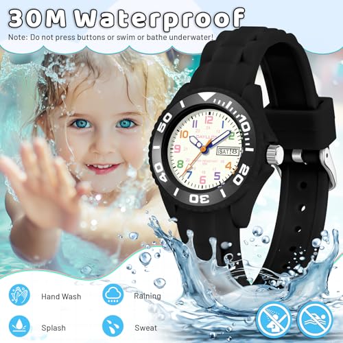 • Waterproof watch:30M waterproof no problem for kids to wash their hands when they wear it,no need to worry about kids breaking it when playing.