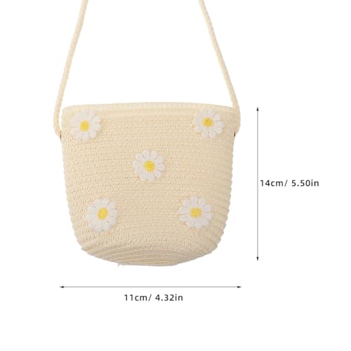 Daisy Straw Hat Bag Set Girls Straw Sun Hat Daisy Pattern Cute Floral Design for Kids Summer Beach Fun 5.51x4.33x0.78 Inches Milky White 7