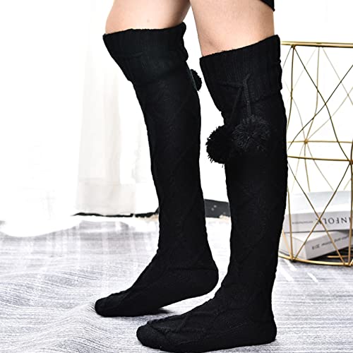 Socks,Women Cute Pompom Sexy Cable Knitted Thigh High Stockings Winter Warm Over Knee Long Boot Socks Leg Warmer 3