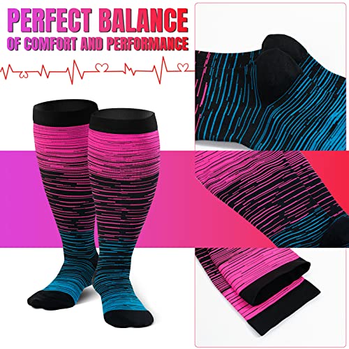 Stripe 1 Pair Wide Calf Socks for Women&Men-Support Knee High Stockings-Best for Running,Hiking,Cycling 4