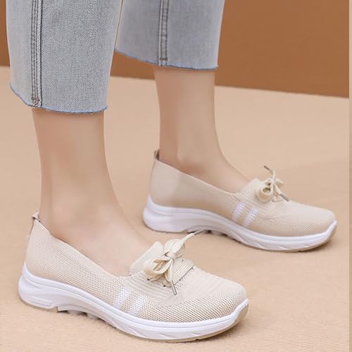 popular ! Women’s Knit Breathable Slip-On Sneakers with Bow Lightweight Non-Slip Casual Orthopedic Shoes with Arch Support,Comfy Low-Top Walking Shoes