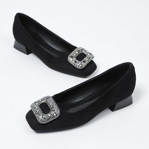 More information about Women's Suede Rhinestone Low Heel Pumps Jeweled Square Toe Chunky Low Heel Closed Toe Dress Work Office Shoes Casual Slip on Slip On Evening Shoes