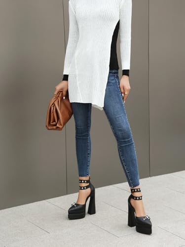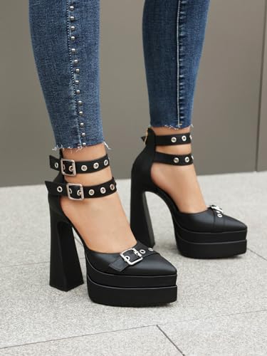 Cantiansu Fashion Pointed Toe Platform Heels Pumps Chunky Heels Buckle Ankle Strap 6