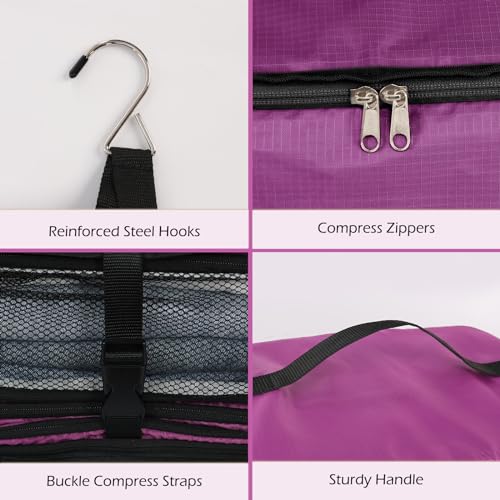 popular ! Surblue Hanging Shelves Travel Compression Packing Cube for Carry-on Luggage Suitcase Collapsible Transformable Garment Closet Organizers Large Capacity, Purple, XXL