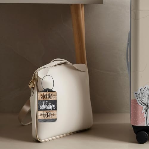 More information about Couple Luggage Tags for Suitcases,Let The Adventure Begin 2 Pack Travel Suitcase Tags,Wood Stripes Traveling Accessories Baggage Tag Label with Steel Loop,Bride Groom Travel Gifts