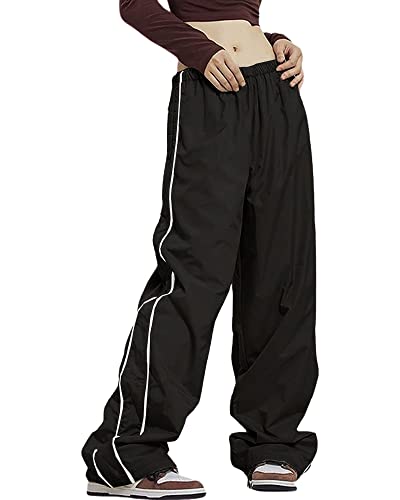 Women Y2K Baggy Track Pants Elastic Waist Wide Leg Parachute Jogger Sweatpants
