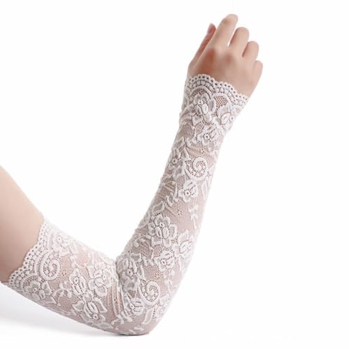 popular ! Lace Arm Sleeves For Women, Long Lace Fingerless Gloves, Elegant Tea Party Gloves for Dress Cocktail Opera Parties (White)