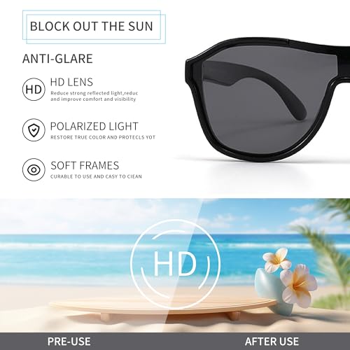 • PROTECT YOUR VISION: SooGree toddler sunglasses are made of high-quality TAC polarized lenses, which effectively filters out light grabbing and harsh reflections, protects your child's eyes from UV rays, and allows them to delight in a clear and snug view outdoors.