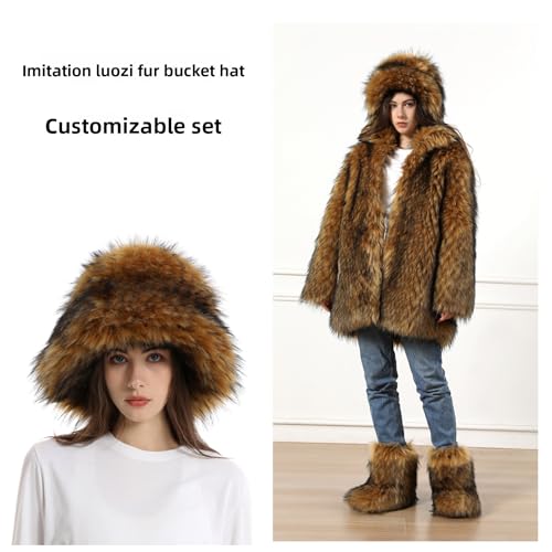 Elegant Faux Fur Fluffy Winter Hat for Women thermal Insulated Headwear Cold Weather Outdoor Oversized Full Face Framing