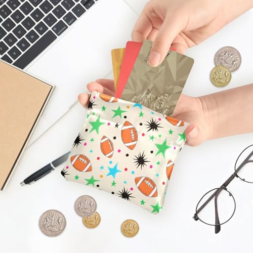 popular ! Autumn Football Motif Coin Purse Leather Pouch Change Purse, Squeeze Coin Pouch for Cards, Keys & Lipsticks, Unisex