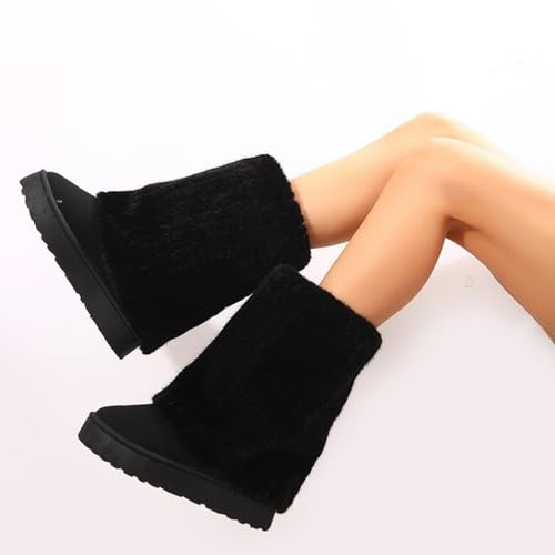 Women's Faux Fur Mid Calf Snow Boots - Round Toe Suede toasty Fur Lined Platform Flat Comfort Outdoor Winter Fashion Boots