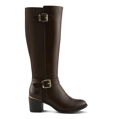 popular ! PATRIZIA KATERINA Women’s Tall Block Heel Boot – Faux Leather Knee-High with Gold Buckle Detail