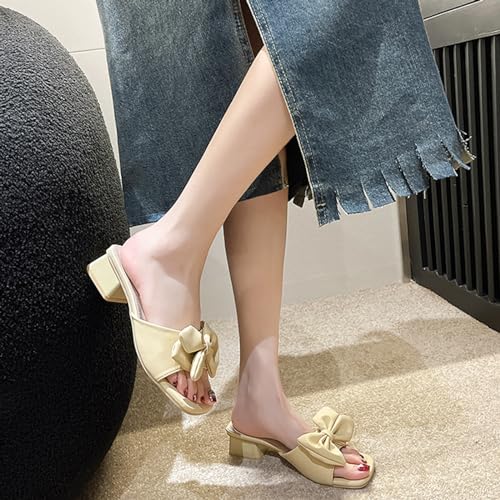 Zeberfi Women's Bow Tie Chunky Heel Sandals Fashion Cute Open Square Toe Slip On Low Block Heel Slide Sandals Summer Wedding Dress Shoes Pumps 5