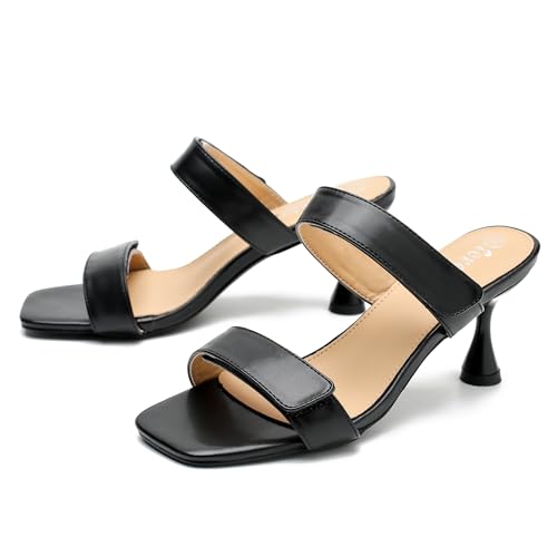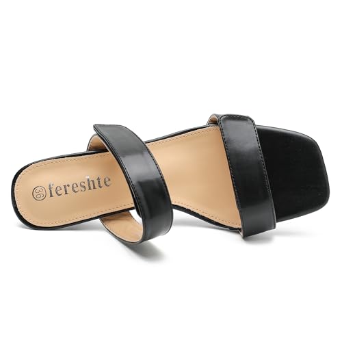 fereshte Womens 2 Strap Slip On Heeled Sandals Slip On Sandals Square Toe Kitten Heeled Mules
