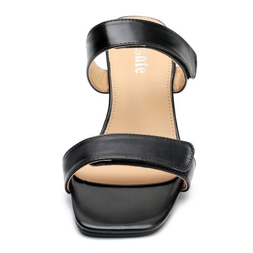 Sole material: RubberOuter material: SyntheticClosure type: Slip OnShoe Upper: first-class synthetic Matte PU Leather /synthetic patent Leather.Heel approx 7cm/2.76 inches.Open square toe slide sandals features a comfortable mid kitten heel, adjustable straps with hook and loop, open-back slip on style, easy to put on and take off.These shoes are perfect for dress, T-shirt, jeans, dress or casual wear, comfortable and elegant, With adjustable straps, adjust the hook and loop="" on the suitable place, which could keep your every step is steady and safe.These heels are suitable for all kinds of occasions, commuting, shopping, dating, parties, show your confidence, exclusive temperament. Whether it's Valentine's Day, Christmas, New Year, Mother's Day, wedding anniversary or birthday, they are your preferred gift. Perfect for everyday use. High quality materials and excellent craftsmanship ensure long-lasting durability.