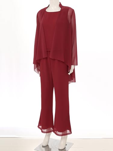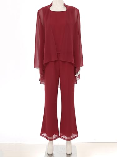 Jelory Womens Elegant Chiffon 3 Piece Suit Set Mother of The Bride Pantsuit Tank Top Jacket Long Pant Outfits