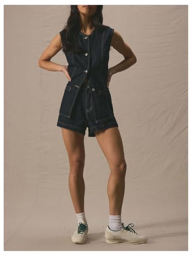 popular ! MakeMeChic Women's Denim Vest Button Down Sleeveless Vintage Jean Jacket Waistcoat