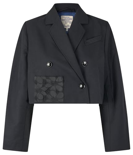 • This cropped blazer features double-breasted button closures, a chest pocket, notched lapel, and vent in the back