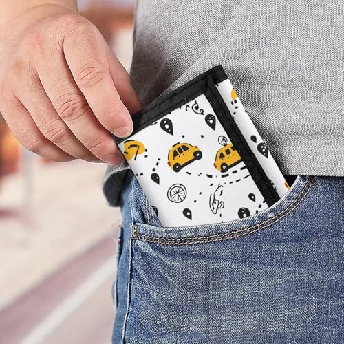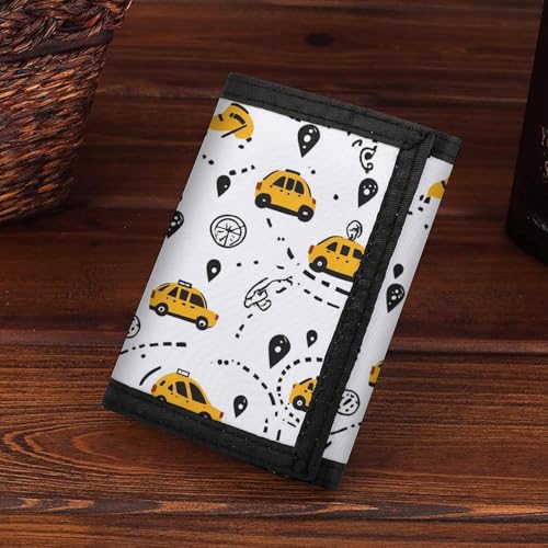 Yellow Taxi Black Route Trifold Wallets for Men Women Ultra Thin Card Holder Purse with Zip Coin Pocket