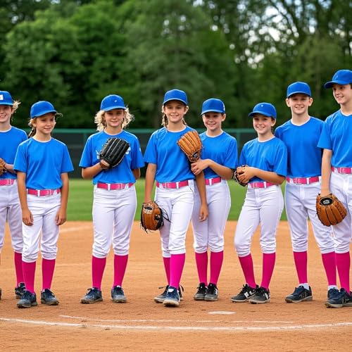 XZQTIVE Over the Knee Baseball Socks and Belt Combo Set for Youth Pink Softball Socks with Adjustable Belt