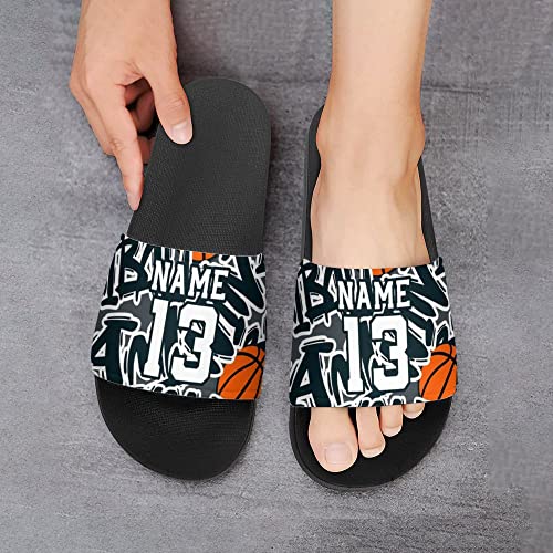 Custom Sports Slides Personalized Slippers Sandals Basketball Graffiti Basketball Quick Drying Slippers Indoor Outdoor,Gift for Men Youth Boy 6