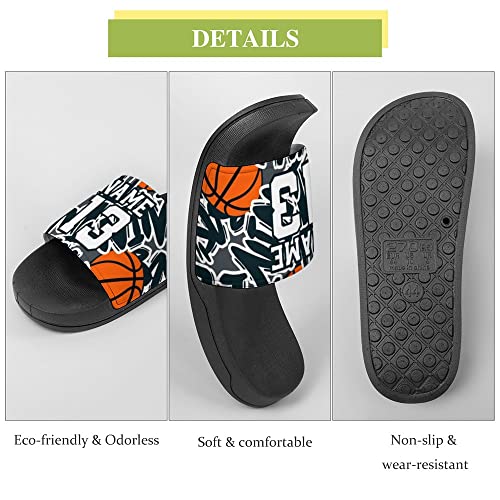 popular ! Custom Sports Slides Personalized Slippers Sandals Basketball Graffiti Basketball speedy Drying Slippers Indoor Outdoor,Gift for Men Youth Boy