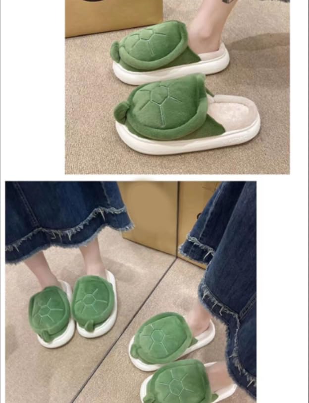 ELONEL Home Indoor and Outdoor Women's Cartoon Turtle Slippers Animal Spring, Autumn, and Winter Warm Cute Soft Plush Cotton Slippers 6