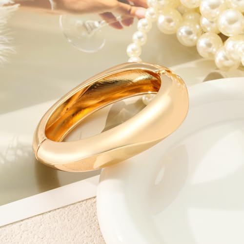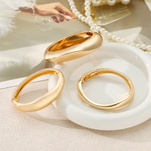 3Pcs Chunky Gold Bangles Bracelets for Women, Spring Hinged Bangles Stackable Set, Trendy Cuff Bracelet Fashion Jewelry Gifts