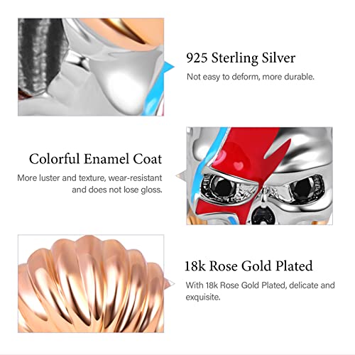 • 💀【Inspiration】:This cool skull made of Sterling Silver with 18k Rose Gold Plated shows brave and hard belief to man. It shows that aggressive appearance not only conveys brave but also victory. Put in on and light your fit .