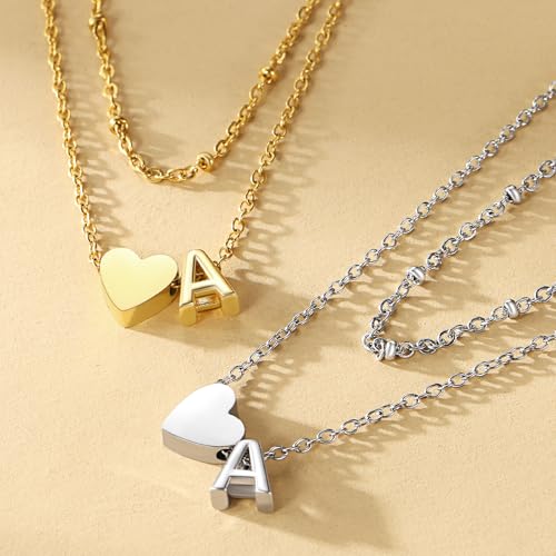 Bestyle Initial Necklaces for Women, Tiny Letter Heart Layered Necklace Dainty Gold/Silver A-Z Pendant Stainless Steel Necklace Personalized Monogram Birthday Jewelry Gifts 1