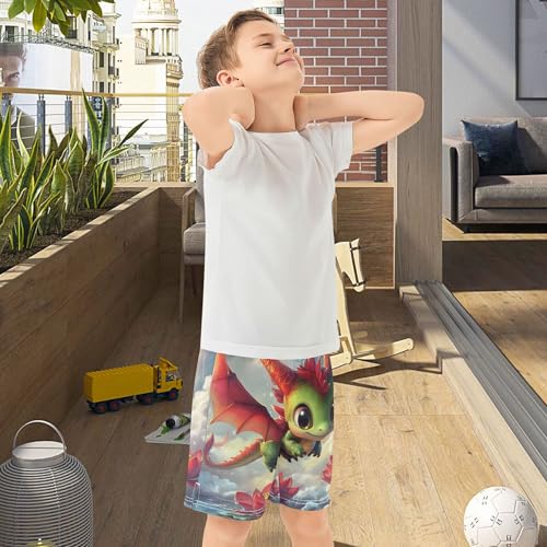Cute Dragon Animal Print Shorts Summer for Boys Elastic Waist Sweat Shorts Print Outdoor Trunks 7-8 5
