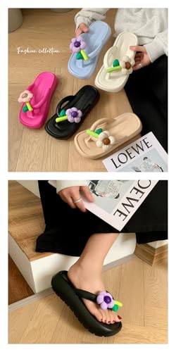 Cute Flower Decor Fashion Flip Flops, Sweet EVA Indoor Non-Slip House Shoes for Women Home Bath Slippers